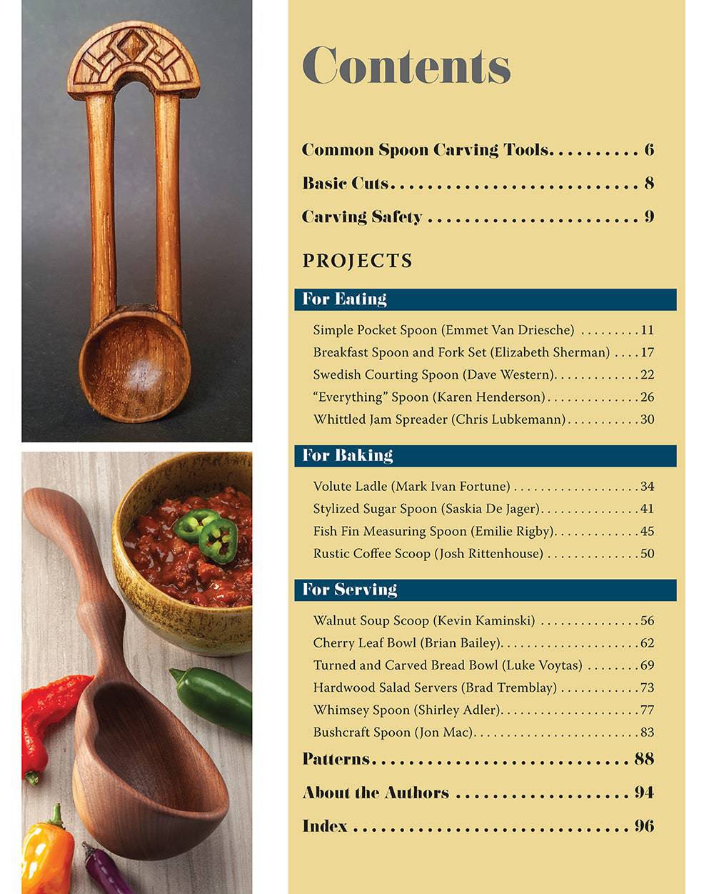 Turn a block of wood into an elegant (and functional) heirloom-to-be! A complete compilation of woodcarving projects from the acclaimed magazine, Woodcarving Illustrated, 12 Spoons, 2 Bowls, and a Knife features 15 step-by-step, beginner-friendly projects ranging from rustic coffee scoops and simple love spoons to salad servers, cereal spoons, bread bowls, jam knives, and more. Showcasing the beautiful work from an array of talented wood artists, craftsmen, and Woodcarving Illustrated contributors, this guide is a must-have for every carver of every skill level to learn the basic tools and techniques for carving wooden spoons, bowls, and knives!