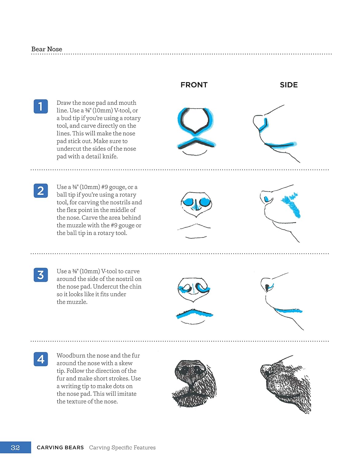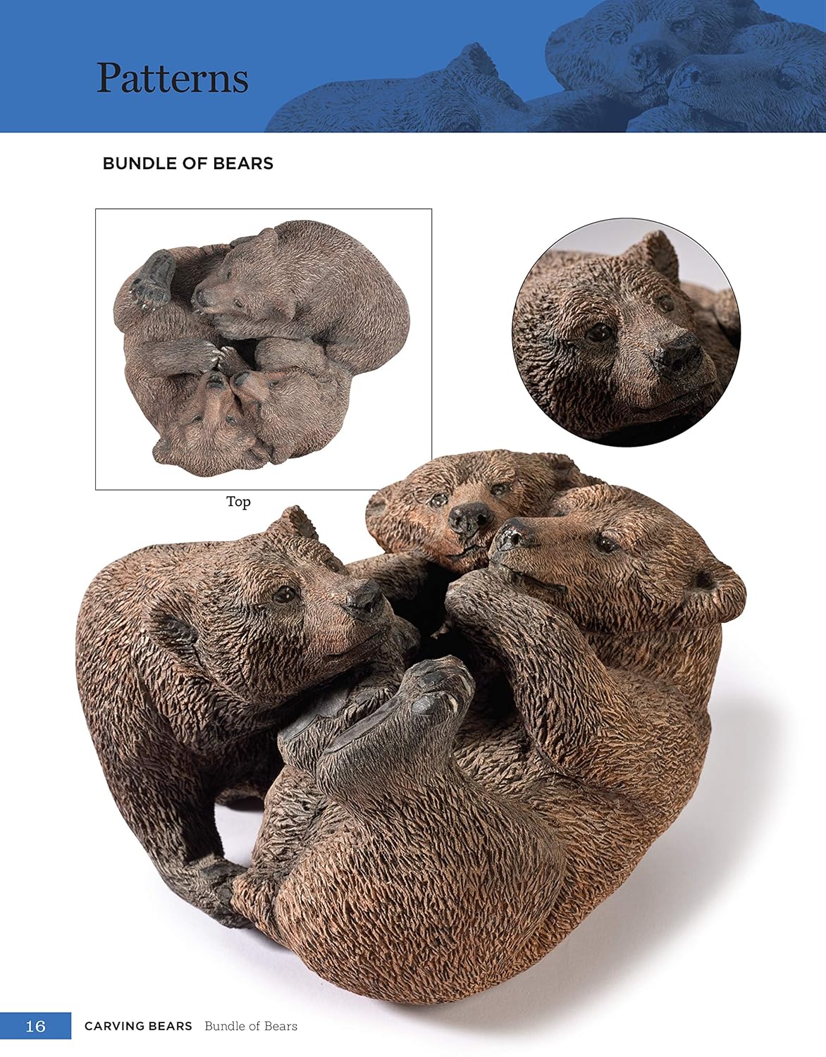 Join award-winning woodcarver Desiree Hajny as she reveals her artistic approach to carving North America’s most exciting predator. Desiree is well known for her lifelike, richly detailed animal carvings. Now she shares her knowledge and carving secrets with you in this handy reference guide. Celebrate the natural beauty of wild bears as you create your own magnificent woodcarvings. Inside you’ll find ready-to-use patterns for carving black bears and grizzlies. Clear reference photos provide inspiring views of bears from all angles, and color-coded anatomy sketches help you to understand how they move. The author offers expert tips for carving challenging details like eyes, nose, ears, and paws, along with texturing, painting, and finishing techniques.
