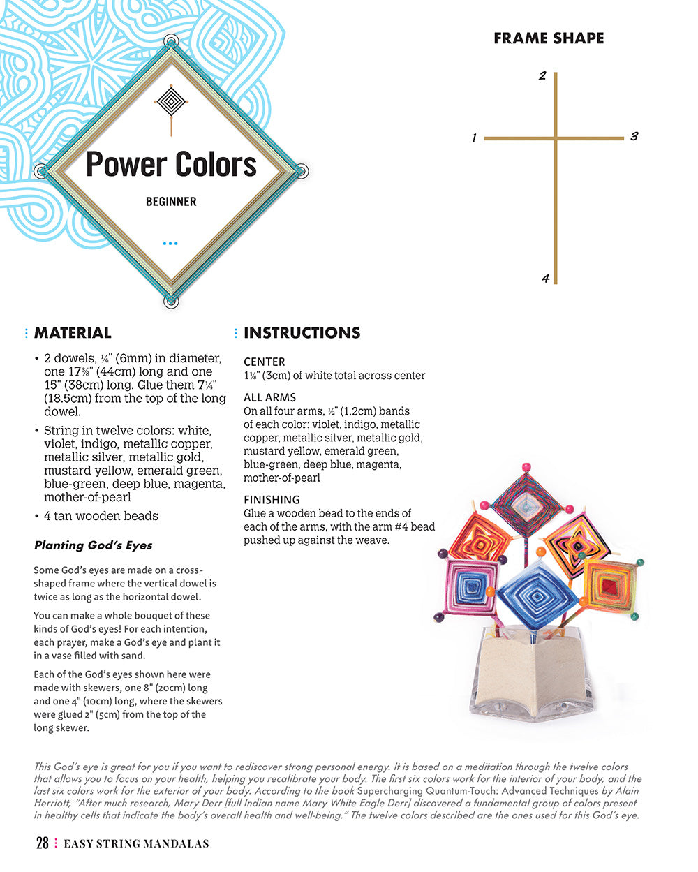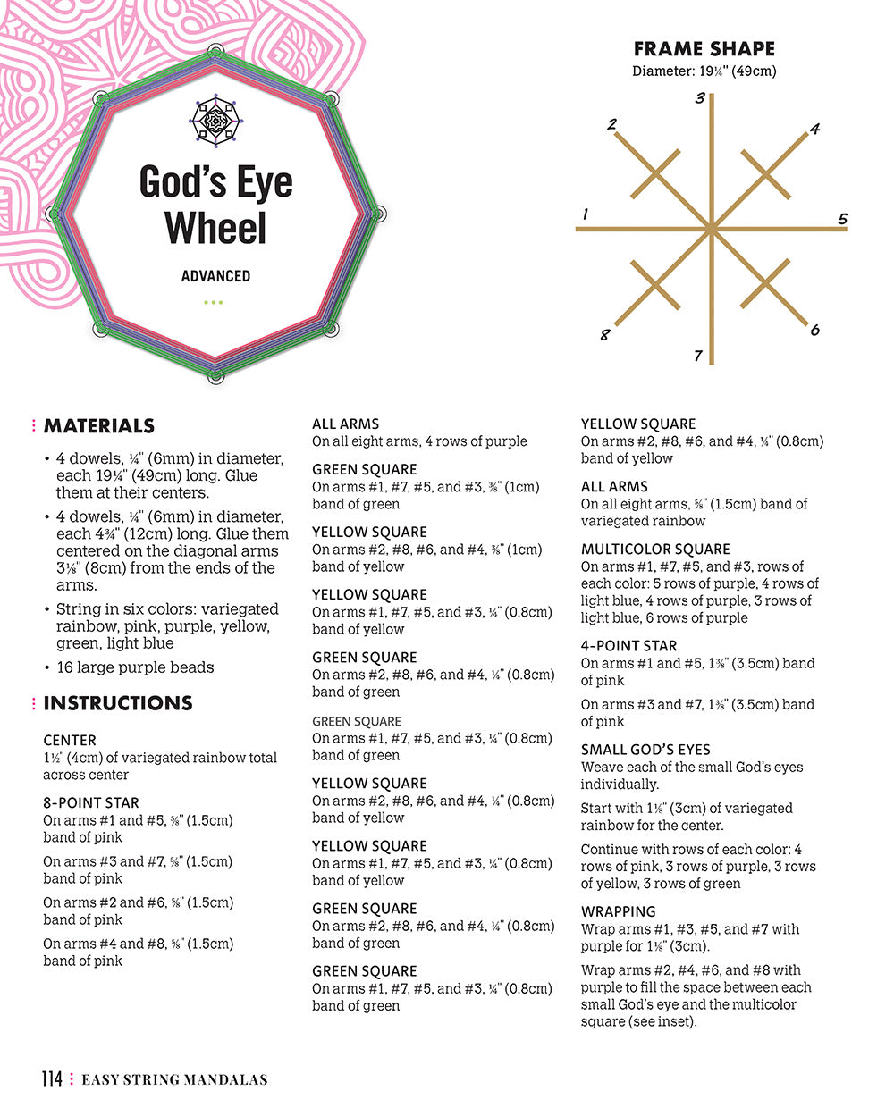 Weave your way to inner peace! A complete and playful guide to wrapping an array of decorative mandalas, Easy String Mandalas is perfect for anyone seeking fun, simple, and creative crafts. Made with easy-to-find and affordable materials, this beginner-friendly guide features 53 mandala projects of varying sizes, shapes, colors, and designs. Complete with step-by-step instructions and coordinating illustrations for every project, also included are helpful tips for creating your own original weaving looms. Go beyond coloring mandalas and learn how to finally make your own, from home decor to earrings!