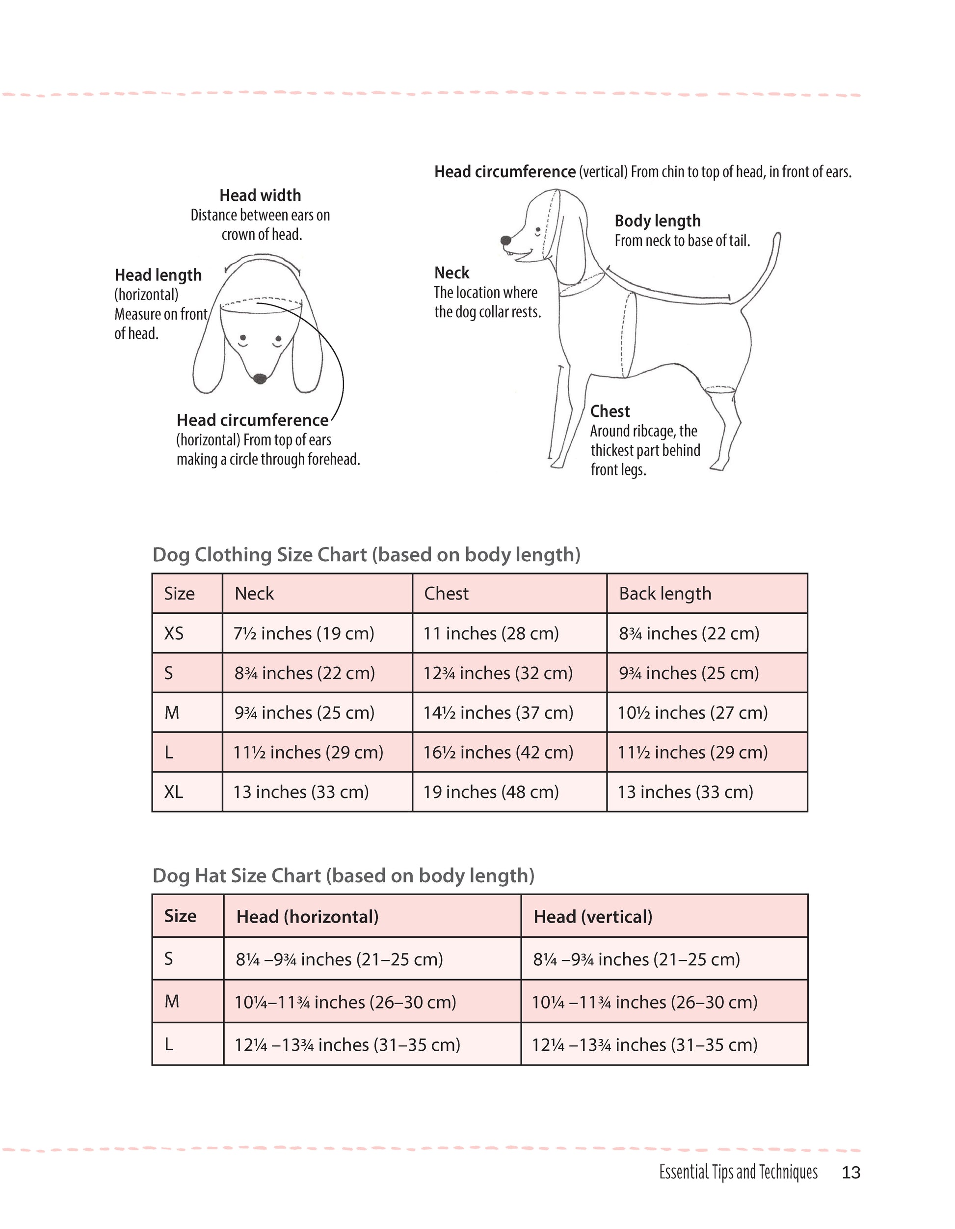 Advice on stitching, measurement lists, and tips on tools and materials.