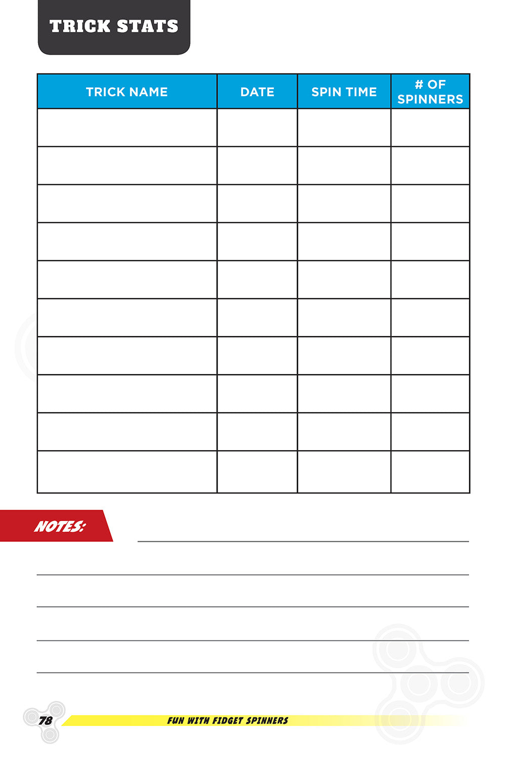 Are you ready to become a world-class spin master? Fun with Fidget Spinners is the must-have ultimate fidget spinner trick book! Hit the big leagues of fidget spinning with this new one-of-a-kind guide. You’ll soar to new levels of fidget skill with awesome spinner stunts and games from YouTube's GeekBite host David King. Impress your friends with pro moves like the hot potato, the no-looker, the hat trick, the high toss, the nose spinner, and more! Check out today’s most popular spinners, and learn how to care for and customize your own collection. Discover why fidgeting is actually good for you, and the cool science behind it. Embrace the fidget spinning lifestyle as you track your progress and tricks in a handy workbook.