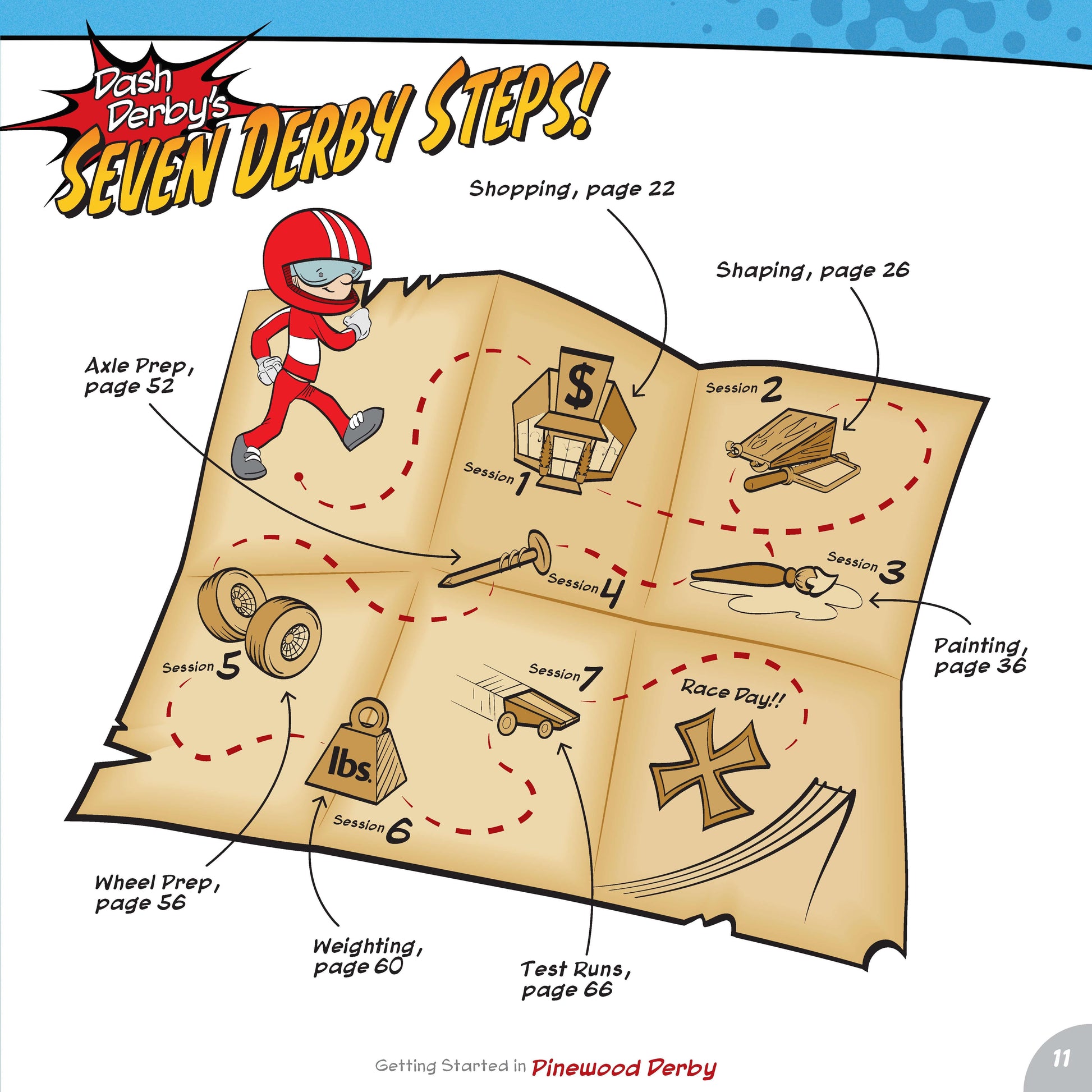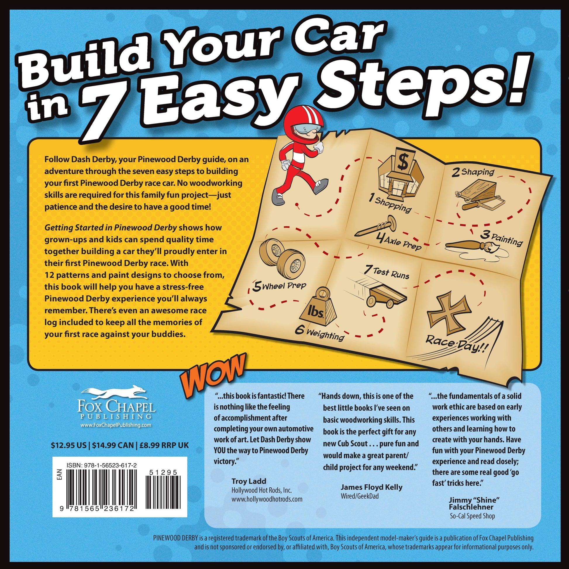 step instructions with detailed photos for each step. The Pinewood Derby will be a breeze by the time you are done reading this book. The book is aimed at the scout and a friendly cartoon character called Dash derby guides the young readers through the process of building their very own Pinewood Derby car. The book is divided into helpful, progressive sections making it easy for the young uns' as well as the parents to understand. In addition, patterns are provided along with spaces to jot in precious memories of race day along with your own photographs.