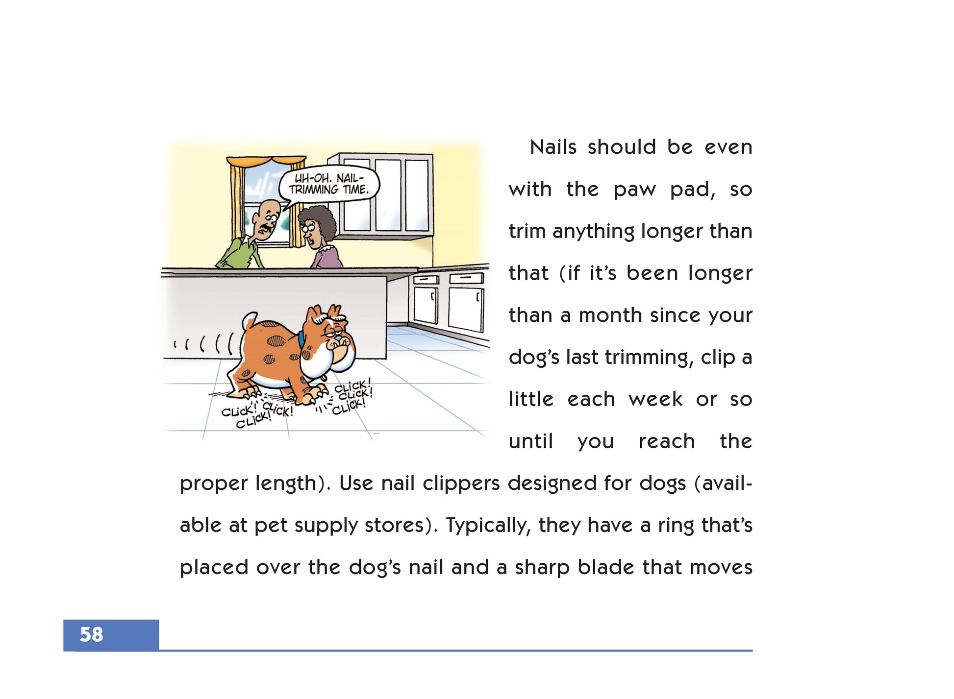A Simple Solutions guide with lots of practical care tips, Grooming discusses everything a dog owner needs to know to care for his dog’s coat.  Whether you own a dog with long, luxurious hair that requires a special care or a simple smooth-coated dog, this little book offers useful advice presented in an entertaining manner that no dog lover can resist. The book offers advice on selecting grooming tools, dealing with shedding, and daily once-overs. With entertaining cartoon illustrations by Buck Jones, Grooming will make readers smile as they learn how to bathe their dog, brush teeth, care for ears, toes, and more!