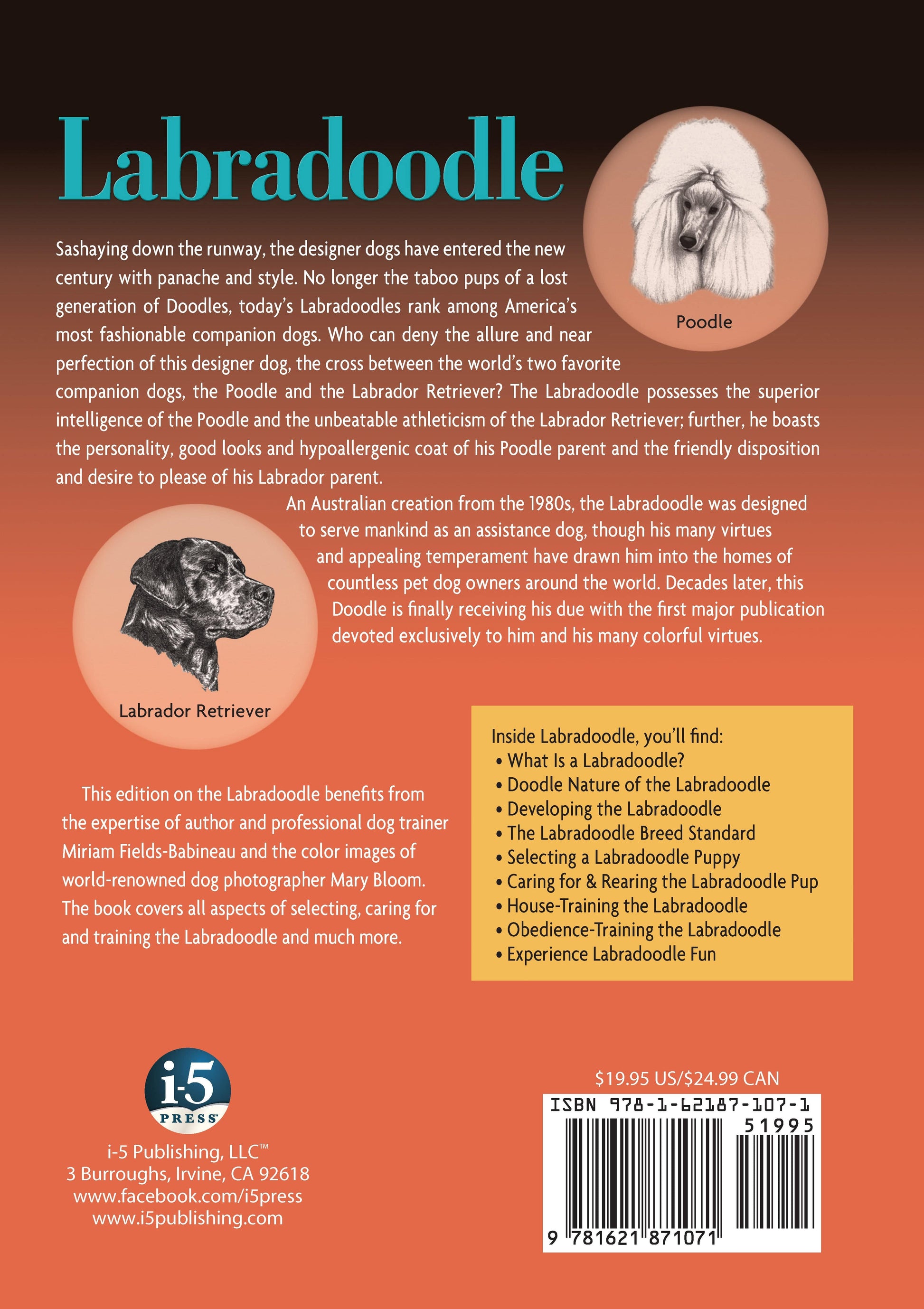A Designer Dog book dedicated to the world’s most popular crossbred, Labradoodle celebrates the ?breed” created from the pairing of a Poodle and a Labrador Retriever. Professional animal trainer and author Miriam Fields-Babineau presents a look at the origins of both parent breeds as well as a glance at the unique nature of a Doodle?the special characteristics of the Labradoodle that combine the best traits of both parent breeds. The book includes the International Labradoodle Association’s standard for the Labradoodle as well as chapters on feeding, grooming, house-training and obedience. The final chapter of the book ?Experience Labradoodle Fun” talks about all of the fun activities for owners and their Doodles, including agility, flyball, dancing with dogs, and more.