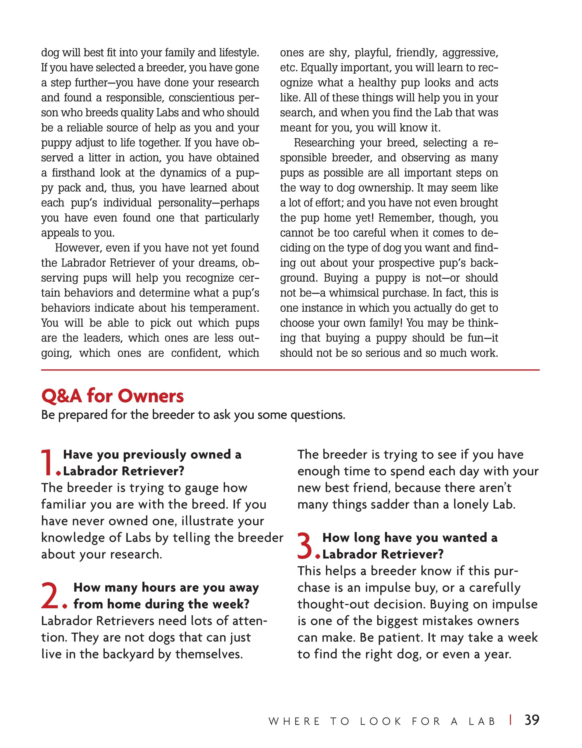 Dedicated to the most popular dog in the world?a sporting dog with no equal and a companion above all else--the Labrador Retriever, this Smart Owner’s Guide, created by the editors at Dog Fancy magazine, offers the most up-to-date and accurate information every dog owner needs to become a well-informed caregiver for his dog. Illustrated with color photographs of adorable puppies and handsome adults, this easy-to-read primer is designed in a modern, lively manner that readers will find user-friendly and entertaining.Each Smart Owner’s Guide offers a description of the breed’s character and physical conformation, historical overview, and its attributes as a companion dog. The reader will find informative chapters on everything he or she needs to know about acquiring, raising, and training this remarkable purebred dog, including: finding a breeder and selecting a healthy, sound puppy; preparing for the puppy’s homecoming, shopping for supplies, and puppy-proofing the home; house-training; veterinary and home health maintenance; feeding and nutrition; and grooming. Obedience training for basic cues (sit, stay, heel, come, etc.) and solving potential problem behaviors (barking, chewing, aggression, jumping up, etc.) are addressed in separate chapters, as are activities to enjoy with the dog, including showing, agility, therapy work, and more.Entertaining tidbits and smart advice fill up colorful sidebars in every chapter, which the editors call ?It’s a Fact,” ?Smart Tip,” ?Notable & Quotable,” and ?Did You Know?” Real-life heroes and rescue stories are retold in full-page features called ?Pop Pups” and ?True Tails.” Recipes, training, and care tips are highlighted in the ?Try This” feature pages.The Smart Owner’s Guide series is the only series that offers readers an online component in which dog owners can join a breed-specific online club hosted by dogchannel.com. At Club Lab, owners of the breed can find forums, blogs, and profiles to connect with other breed owners, as well as charts and checklists that can be downloaded. More than just 20,000 pages of solid information, there’s a host of fun to be had at the club in the form of downloadable breed-specific e-cards, screensavers, games, and quizzes.The Resources section of the book includes contact information for breed-related organizations and rescues, as well as practical guidance on traveling with dogs, identification, and locating qualified professionals to assist the dog owner, such as pet sitters, trainers, and boarding facilities. This information-packed Smart Owner’s Guide is fully indexed.