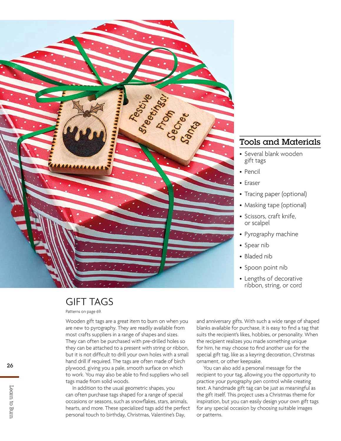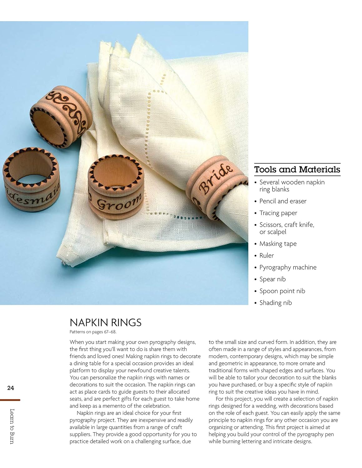 This easy-to-learn introduction to the art of pyrography offers fourteen step-by-step projects for making decorative gifts--from coasters and picture frames to bangles, decorative plates, and door hangers--illustrated with clear how-to photographs. Each pyro project can be completed using ready-made materials that are easy to find at your local craft store. Fifty bonus patterns will allow you to unleash your creativity on hundreds of additional woodburning projects.