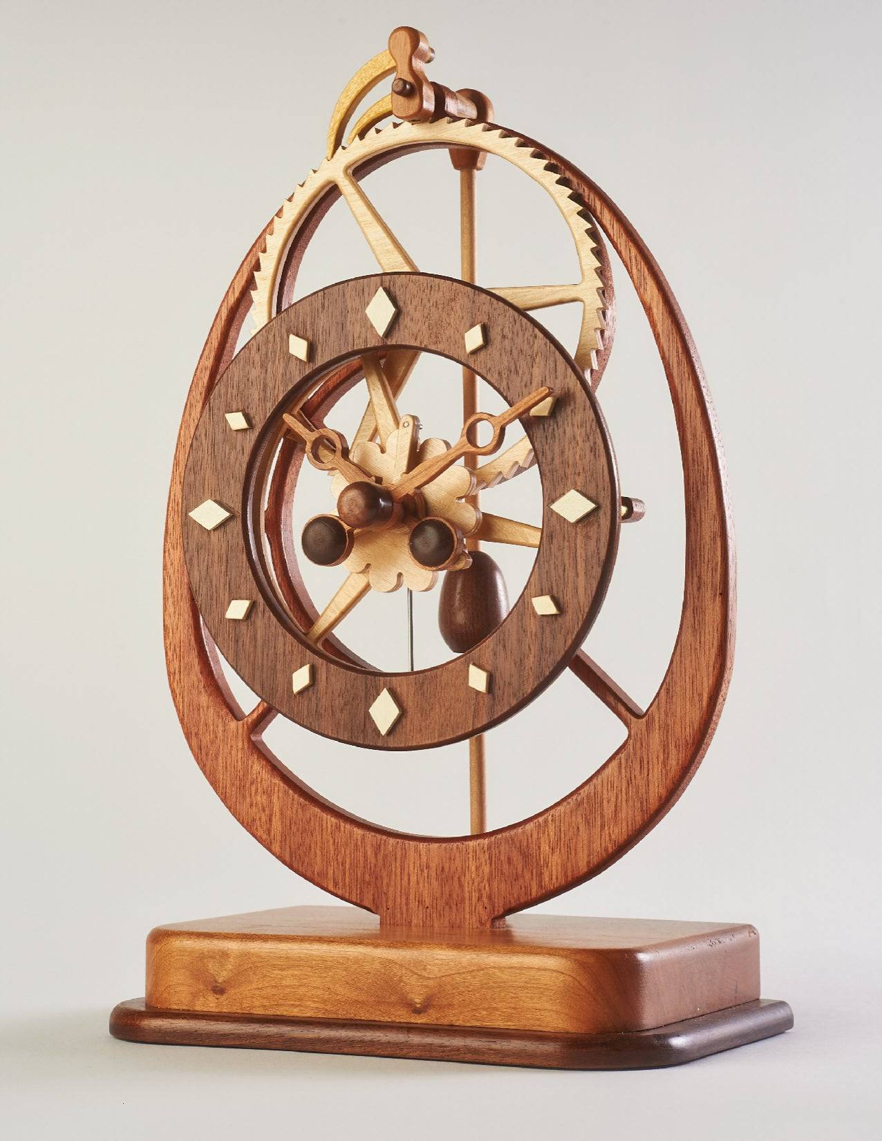 Making a piece of wood move is fun, but making it tell time is truly amazing! Inside this book, you’ll find ingenious plans for creating awesome wooden machines that actually move and keep time. These working wooden wonders might just be the most enjoyable projects you ever build in your shop. Wooden gear clocks are not only fascinating to watch, but can be surprisingly accurate timepieces. Just don’t expect atomic precision—after all, they’re modeled on 17th-century technology! But as you build these scroll saw clocks you’ll use all of the basic principles that still govern mechanical clocks today. Six well-illustrated step-by-step scroll saw projects are arranged by skill level from beginner to advanced, and full-sized scroll saw patterns are attached to the book in a handy pouch. With a little perseverance, you’ll soon be ticking along happily with your own wooden clockworks. All you have to do is build them, wind them up, and let them run—no batteries required.