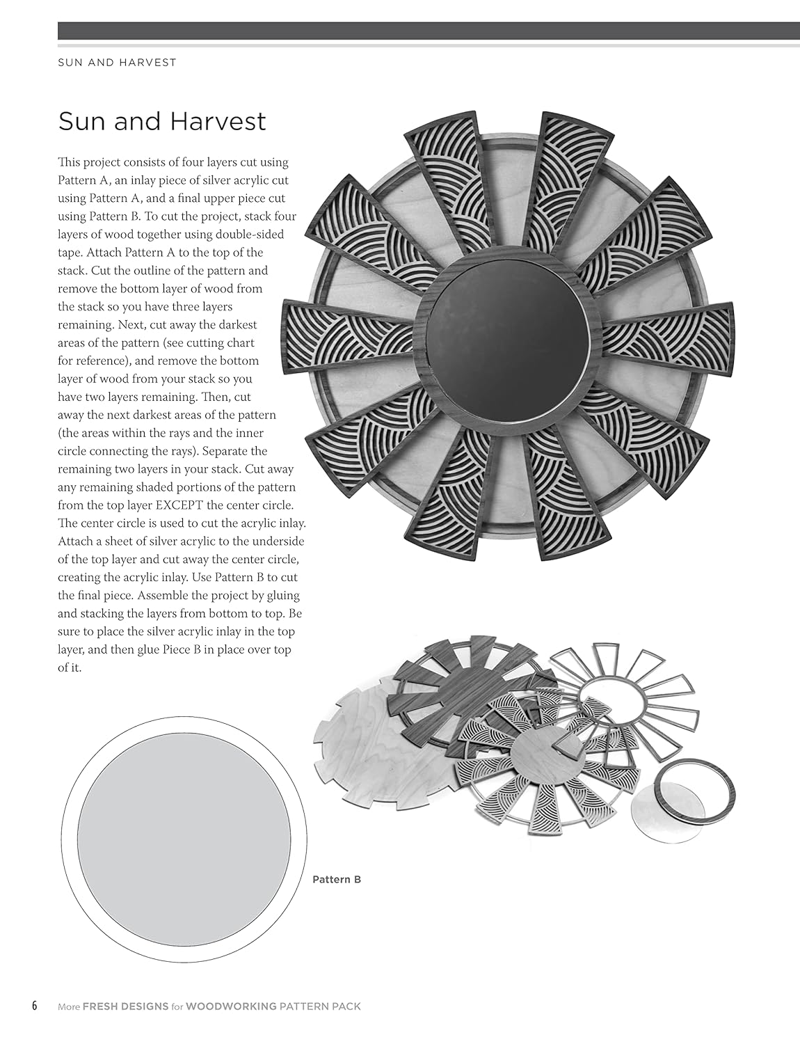Thomas Haapapuro, author of Fresh Designs for Woodworking, presents 9 additional inspired projects for the scroll saw. The booklet begins with simple projects that utilize essential techniques. Subsequent projects gradually introduce new methods to help readers to acquire an integral skill set as they work on more complex and interesting pieces.