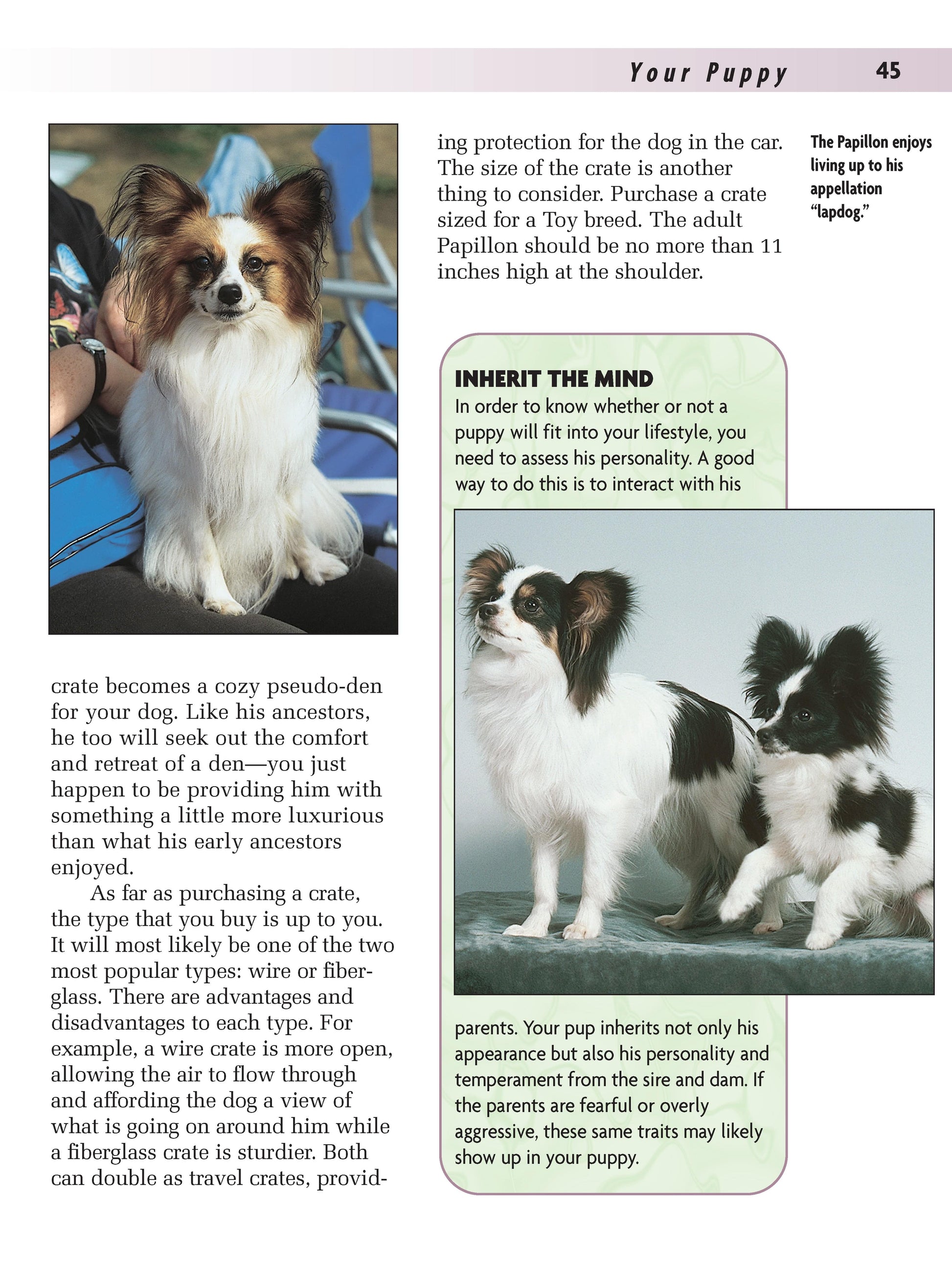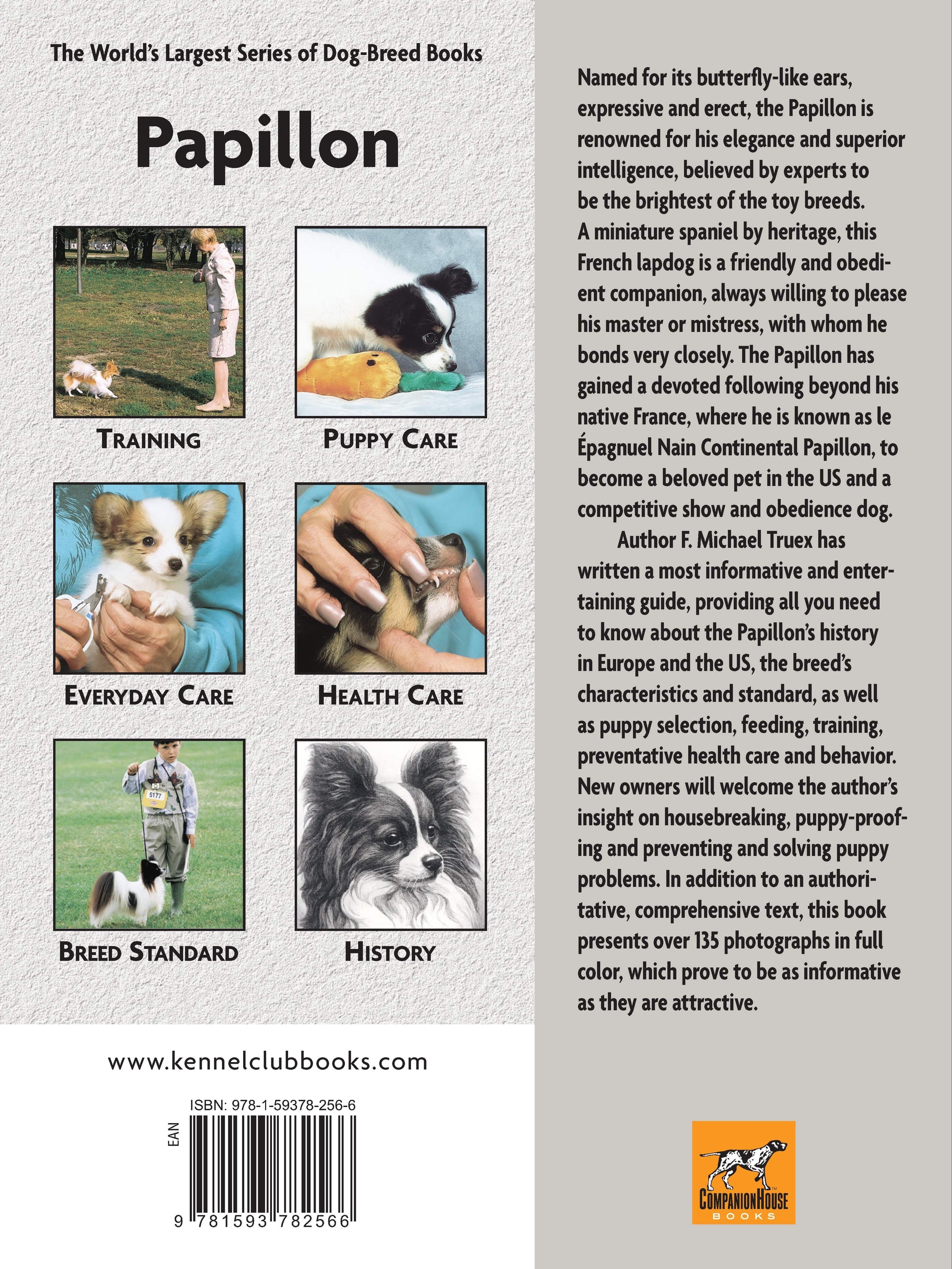 Author F. Michael Truex has written a most informative and entertaining guide, providing all you need to know about the Papillon’s history in Europe and the US, the breed’s character and standard, as well as puppy selection, feeding, training, preventative health care and behavior. New owners will welcome the author’s insight on housebreaking, puppy-proofing and preventing and solving puppy problems. In addition to an authoritative, comprehensive text, this book presents over 135 photographs in full color, which prove to be as informative as they are attractive.