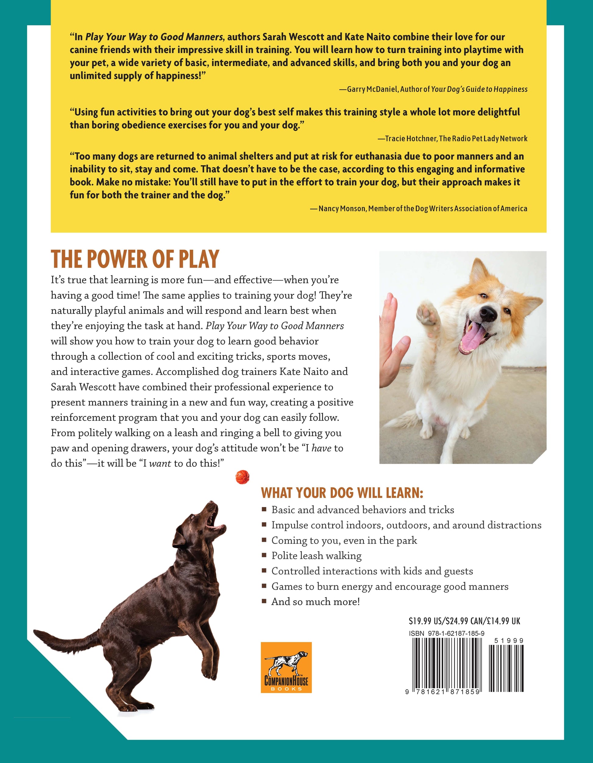 ·      Effective strategies for teaching dogs impulse control, obedience, polite leash walking, and good manners around kids and strangers.