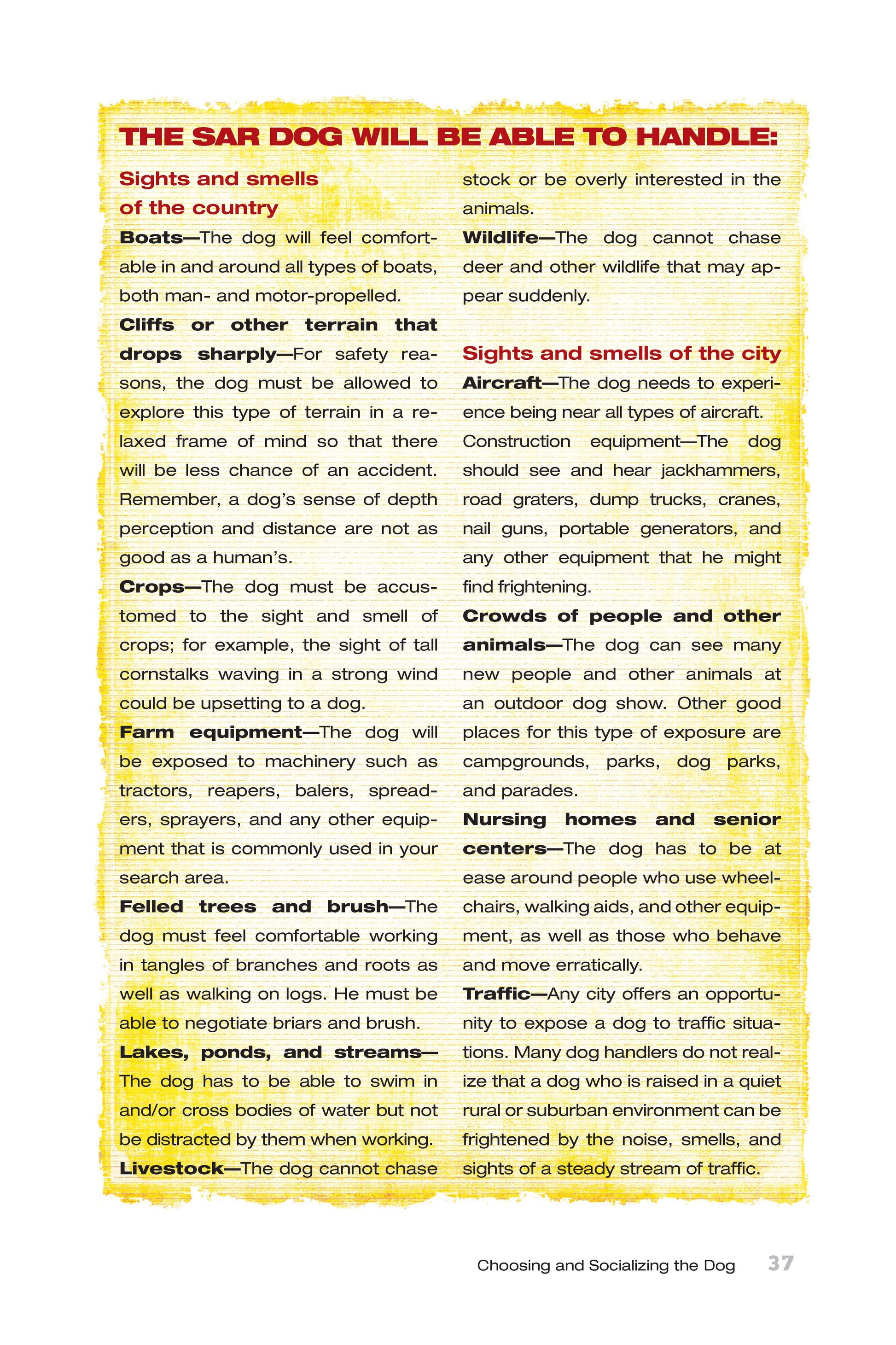 Ready! provides descriptions of every type of search, including specific training methods to accomplish each SAR discipline. Professional and volunteer SAR workers will profit from the Bulandas’ expertise on training the dog to alert, managing the search mission, choosing and socializing a SAR dog, and how to train dogs for specific commands (such as bar, turn around, go to an object, check, slow, crawl through and others). Readers curious about the fascinating work of the SAR canine will enjoy the general chapters about the history of SAR, an explanation of how dogs use scent to locate people or objects, and the functions of the SAR dog.