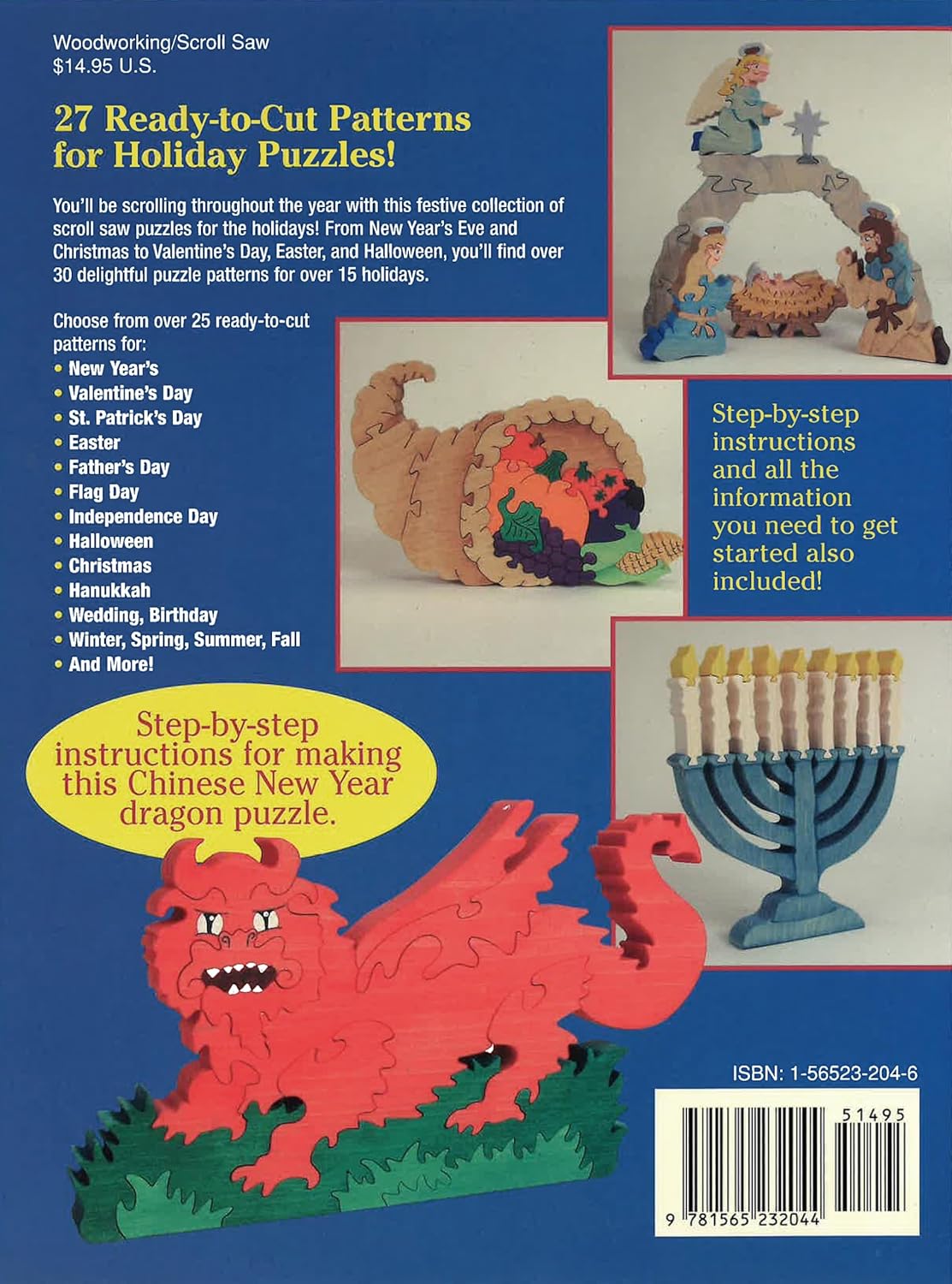 You'll be scrolling throughout the year with this festive collection of scroll saw wooden puzzles for the holidays! From New Year's Eve and Christmas to Valentine's Day, Easter, and Halloween, you'll find over 25 delightful puzzles and scroll saw patterns for over 15 holidays and seasons. Basic scrolling information such as choosing a blade, safety, and technique tips also included!