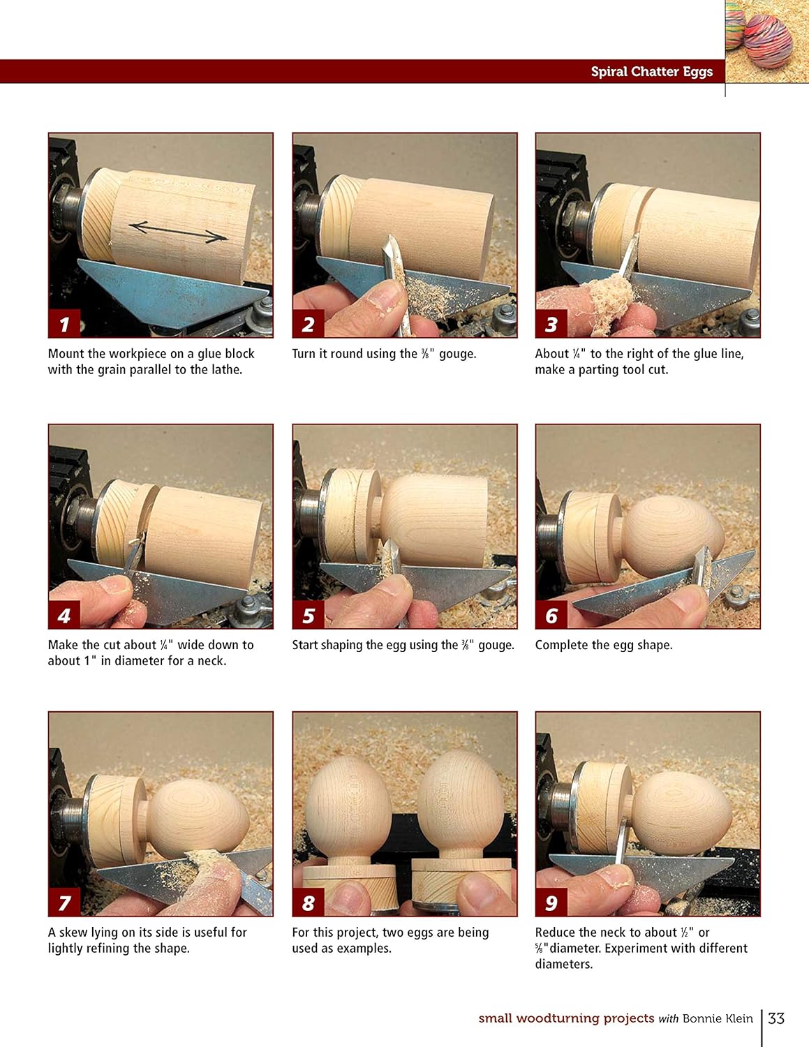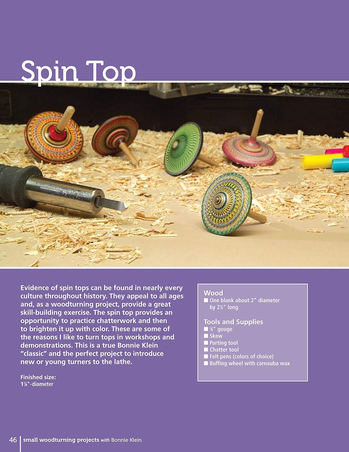 A legendary woodturning expert reveals the techniques that lead to woodturning success. Whether you are an enthusiastic beginner or an experienced turner, these practical and fun-to-make small projects are Bonnie Klein "classics" that will ultimately improve your woodturning expertise on any size lathe. Twelve step-by-step projects demonstrate a wide variety of techniques and decorative enhancements, accompanied by full-color photographs and easy-to-follow instructions..