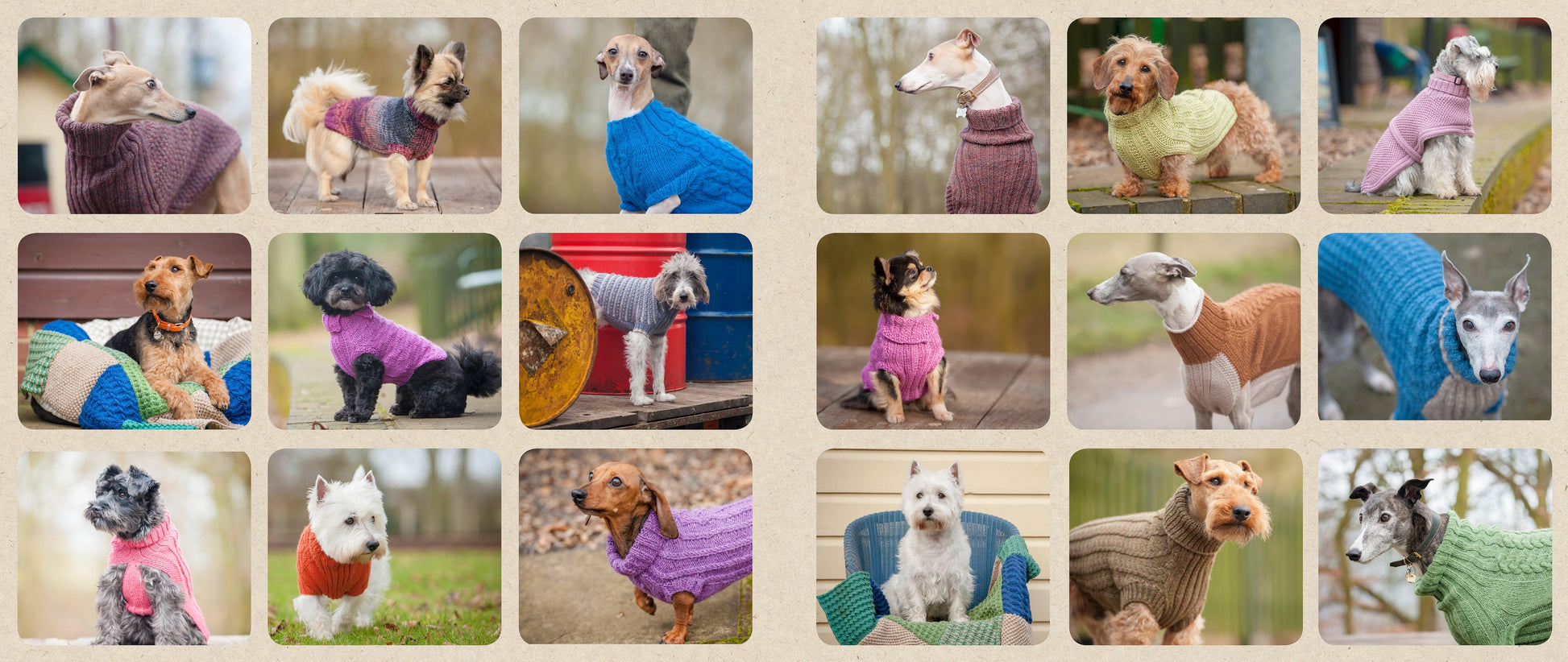 ?Materials lists, yarn suggestions, and project guidelines based on the dog’s size