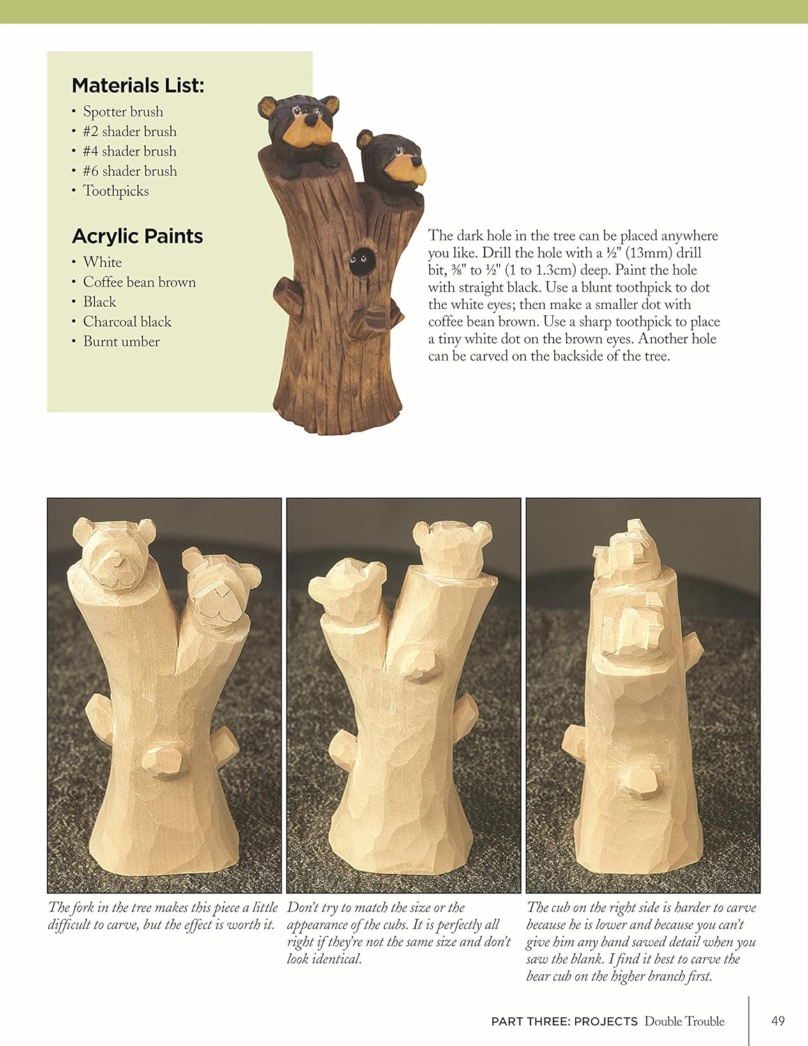 Learn to whittle 12 whimsical woodland creatures with step-by-step instructions and easy-to-use patterns in Woodcarving the Country Bear and His Friends. Not quite caricature, but not realistic either, these humorous bears, moose, rabbits, and beavers are easy and enjoyable to make. Each fun whittling project features full color photographs from 4 angles, in-progress shots, detailed patterns, and paint color recommendations. Also included is a complete overview of carving tools, plus carving and painting tips and techniques.